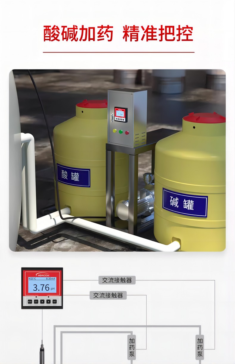 pH/ORP 控制器广泛应用于火电、化工化肥、冶金、环保、制药、生化、食品和自来水等行业,对溶液中 pH 值或 ORP 值和温度连续监测。连续监测数据通过变送输出连接记录仪实现远传监控与记录。CN5