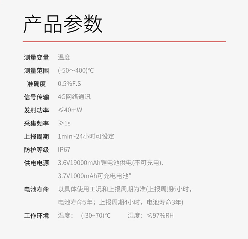 彩乐园 TBP800无线远传温度传感器 4G通讯 电池供电 IP67防护 低功耗运行