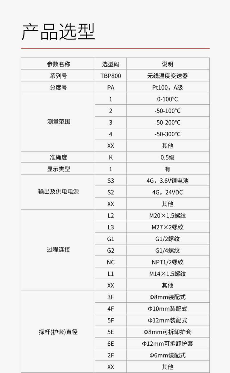 无线温度变送器是基于 4G 无线通讯网络使温度的测量、变送、上报为一体的低功耗智能仪表。产品采用 Pt100 温度传感器作为敏感元件,高精度信号调理电路,低功耗电池电源管理,丰富的 LCD 显示界面于一体,周期性上报温度测量值、电池电量、信号质量等数据,并且能够在温度超出设置范围时及时报警,提前预警故障隐患。 本产品适合油田、水利、消防管网、自来水管网、城市供热管网等智慧城市应用场景。